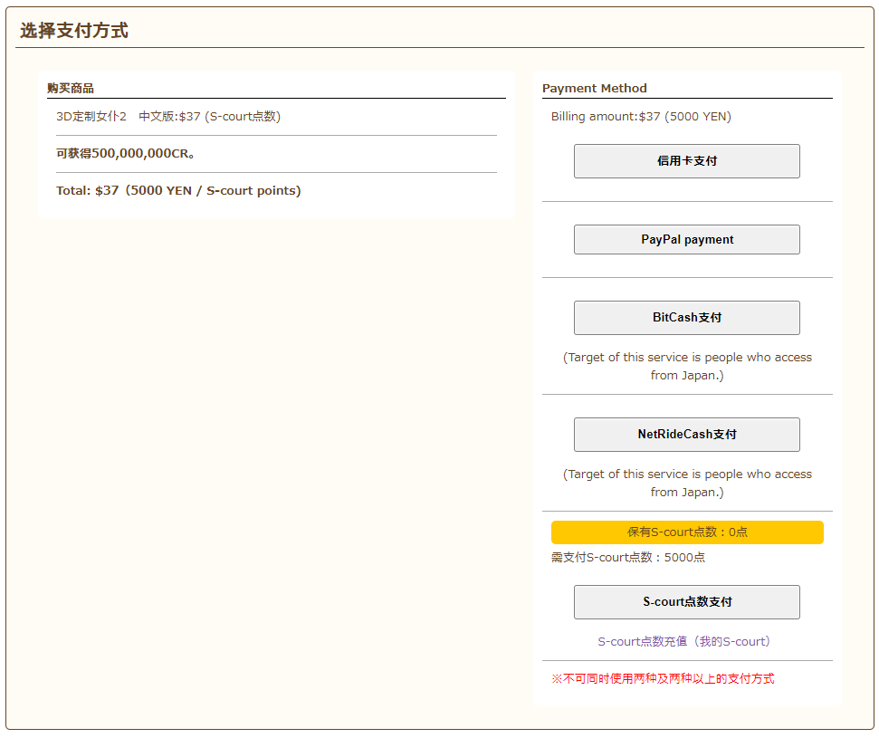 如選擇「S-court點數支付」,則會直接完成支付,不會被導向其他頁面。